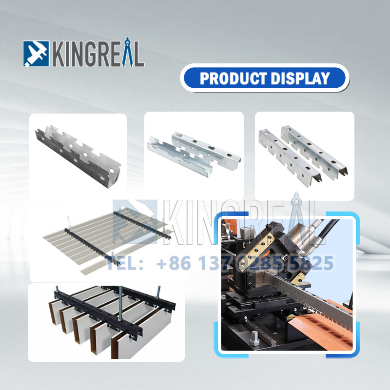 KINGREAL CEILING MACHINERY metal ceiling carrier roll forming machine is used in conjunction with a baffle ceiling making machine or a linear strip ceiling machine, produces high-quality metal ceiling carriers and suspended ceiling panels, creating a complete suspended ceiling system.